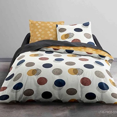 Bedding set includes: 1 duvet cover (220 x 240 cm) and 2 pillowcases (65 x 65 cm). Material: 100% cotton, 57 threads, natural fibre Easy care machine washable at 40 °C. Hand slot and button closure. Tested for harmful substances according to Oeko-Tex standard