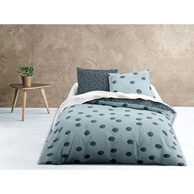 Size: 1 duvet cover 220 x 240 cm + 2 pillowcases 63 x 63 cm. Material: 100% cotton, 57 threads/cm², natural fibres Reversible design The little plus: the concealed button closure for a neat finish; the hand slits make it easy to insert the duvet; the pillowcase with ruffled finish, very elegant. Care: washable at 40 °C, easy to clean
