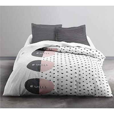 Today Enjoy Pop Smile HC4 Duvet Cover 240 x 260 cm + 2 Pillowcases 100% Cotton, White/Rose/Black, 240/260
