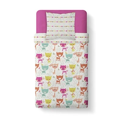 TODAY Happy Cats Bedding HC1: Duvet Cover 140 x 200 cm + 1 Pillowcase 100% Cotton, Cotton 57 Thread Count, Multi Coloured