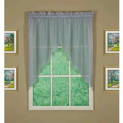 True premium voile sheer, woven by high twisted double filaments, Crispy and soft, a true luxury voile sheer, offering authentic touch of French Tergal interchangeable components, creative combinations, made your own window décor a customized fashion, pick and add to your any window size and style, you take control of your every window fashion styles, from 19 sizes and times in 18 colors! engineered with scalloped edges on swag pair 38", for top treatment, use Valance 14" or Fan Insert as insert for toppers, add more valance or fan inserts for wide windows. 1.5" rod pocket, generous 1.5" header; 100% polyester, easy care, machine wash; each unit is sold separately.
