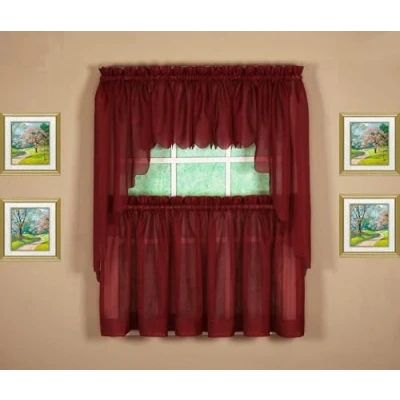 Today's Curtain Emelia Original Voile Tier Pair 30", Burgundy, 60" W x 30" L