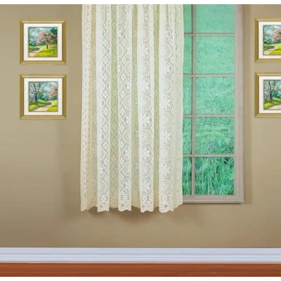 Premium jacquard lace, heavy weight, made of lofted yarn heavy weight knitted, providing privacy and sunlight filter entire whole piece engineered with scalloped bottoms and sides 1.5” rod pocket, 100% polyester, easy care.Seasons: All Season.Item weight: 0.3926 pounds International products have separate terms, are sold from abroad and may differ from local products, including fit, age ratings, and language of product, labeling or instructions.