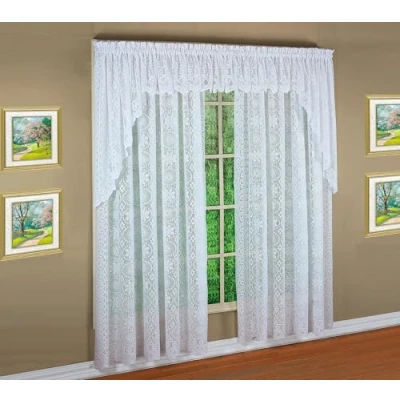 Premium jacquard lace, heavy weight, made of lofted yarn heavy weight knitted, providing privacy and sunlight filter entire whole piece engineered with scalloped bottoms and sides 1.5” rod pocket, 100% polyester, easy care.Seasons: All Season.Item weight: 0.3926 pounds International products have separate terms, are sold from abroad and may differ from local products, including fit, age ratings, and language of product, labeling or instructions.