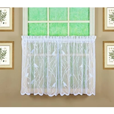 Today's Curtain, Songbird Semi Sheer Lace Tier 24", White, 56" W x 24" L