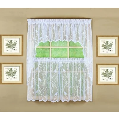 Jacquard lace sheer, semi-sheer, good balance for sheer and privacy, soft and airy, light filtering engineered scallop bottom each unit of tier comes as a pair, the left piece and right piece.
