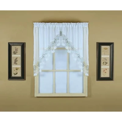 Macramé trim patchwork with fine embroidered organza appliqué on voile sheer body, 100% polyester. Crispy and soft, a true luxury voile sheer, offering airy and sheery light filtering, multi-color décor options for your home interior mix and match. Each unit of Swag 38" comes as a pair which includes the left piece and the right piece, in a total width 58". Use Swag 38" as window top treatment, or work with Valance 14" or Crescent 18". Add more untis of Valance 14" or Crescent 18" for wide windows and better fullness. Easy care, machine washable, 100% polyestyer. Each component and unit sold separately. Create your window décor styles by selecting different units and components.
