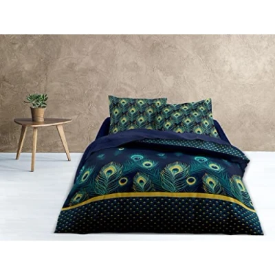 Size: 1 duvet cover 220 x 240 cm + 2 pillowcases 63 x 63 cm. Material: 100% cotton, 57 threads, natural fibres Reversible design The small plus: the concealed button closure for a neat finish; the hand slots to make it easier to put the duvet in place; the pillowcase with a ruffled finish, very elegant. Care : washable at 40 °C; easy-care