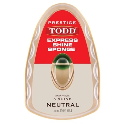TODD PRESTIGE EXPRESS SHINE SPONGE NEUTRAL This premium fast-acting shoe polishing sponge is designed for a quick and simple shoe refresh. Recommended to use on all colour leather shoes for the best protection. Not suitable for use on suede, nubuck or fabric. Available in: Black / Neutral Size: 6m