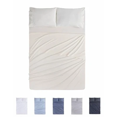 The 4-piece bed sheet set includes 1 flat sheet, 1 fitted sheet and 2 pillowcases 50 x 80 cm with flap wrap closure. The fabric is of premium quality. Brushed microfiber fabric makes the sheet set exceptionally soft, smooth and comfortable, keeping you warm in winter and cool in summer. The microfiber material is processed to make it resistant to shrinkage and color loss, which increases the longevity of the set keeping it in good condition. Machine washable up to 40 degrees and iron at low temperature. Product made entirely in Spain by Todocama.