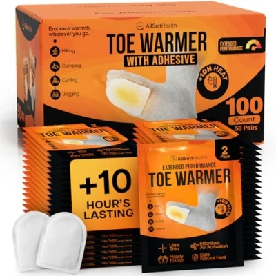 UP TO 10 HOURS OF HEAT FOR COLD FEET – Keep your toes toasty for up to 10 hours with our disposable foot warmer. Perfect for chilly outdoor activities like skiing, hiking, fishing, hunting, camping, or walking the dog in fall and winter. ADHESIVE STICKER FOR A SECURE FIT – Designed with an adhesive backing to stay in place, these foot warmers for women won’t shift around while you’re on the move. Stick them in your shoes or boots for all-day comfort and warmth. BULK VALUE PACK – 50 PAIRS (100 WARMERS) – Be prepared for the season with our bulk pack of foot warmers for feet, ideal for families, outdoor workers, and adventurers in cold weather. EASY AIR ACTIVATION & REACTIVATION – Just open a pack and let the air activate the heat. Use as hot hands toe warmers, hand and foot warmers, a feet warmer, or a toe warmer for reliable heat anytime you need it. PORTABLE & TRAVEL-FRIENDLY – TSA-approved packs are safe to pack in your luggage or backpack. Great as hand and toe warmers or warming pads on-the-go for women, men, and kids.