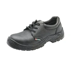 Strong shoe for protection in the workplace. Steel midsole and 200 Joule toe cap protects from impact. Dual density sole for extra protection and shock absorbing heal. Oil resistant and slip resistant sole. Anti-static footbed to reduce shocks.