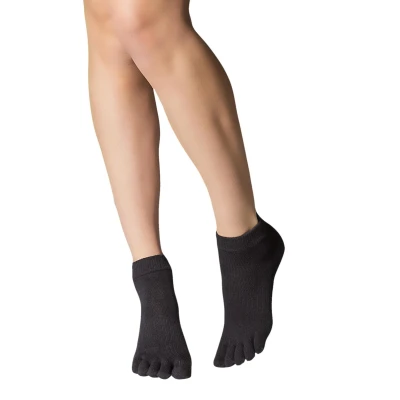 With five individual toe pockets to permit natural, full movement, the unique design of ToeSox has been shown to increase circulation, flexibility and dexterity during any activity, helping strengthen the toe and foot muscles of your feet for better overall stability and balance. These ToeSox Full Toe Organic Cotton Ankle Yoga Socks are recommended for all yoga, Pilates, ballet and dance, martial arts, and barre work. The socks have anti-slip grips on the sole for greater traction, with inbuilt arch support bands and secure fitted heels. ToeSox are 90% organic cotton rich stretch fabric, for a breathable, soft and accurate fit.