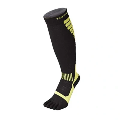 TOETOE Men, Women Sports CoolMAX Patterned Compression Knee High Toe Socks, Hygienic, Breathable 1 pair Black&Green S/M/L