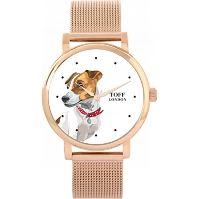 Toff London Ladies Brown Jack Russell Terrier Dog Head Watch