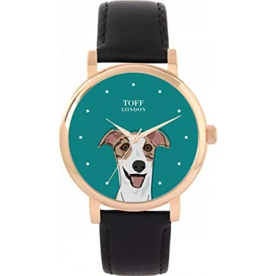 Toff London Ladies Striped Beige Whippet Dog Head Watch