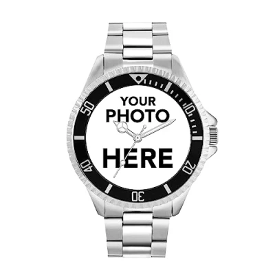 Your watch, your way: upload your own photo to create your personalised photo watch.,Free engraving: you can get your watch case back engraved with a meaningful message of up to 34 char,Easy to order: create a bespoke gift for the one you love with our personalised photo watch. Select ,42mm silver-coloured case with a silver metal strap and analogue display powered by Miyota quartz mo,Unique photo gift: the perfect wedding gift, anniversary gift for parents, gift for loved ones or fr