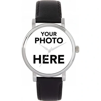 Your watch, your way: upload your own photo to create your personalised photo watch.,Easy to order: select customise now, upload your photo, adjust to fit and add to basket.,Free engraving: honour a special date for your loved one. You can get your watch case back engraved ,Features: 38mm gold case with a black leather strap that’s interchangeable. Powered by Miyota quar,Friendship photo gift: the perfect birthday, Christmas or anniversary gift for friends.