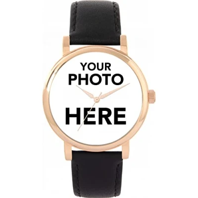 Your watch, your way: upload your own photo to create your personalised photo watch.,Easy to order: select customise now, upload your photo, adjust to fit and add to basket.,Free engraving: honour a special date for your loved one. You can get your watch case back engraved ,Features: 38mm rose gold case with a black leather strap that’s interchangeable. Powered by Miyota,Friendship photo gift: the perfect birthday, Christmas or anniversary gift for friends.