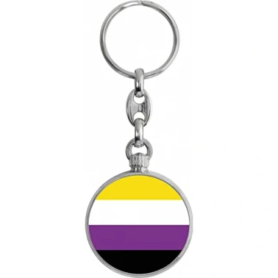 Made in Britain, hand assembled Pride Nonbinary Flag keyring Unique hand illustrated drawing by British based designers Each 37mm round keyring comes with a velvet gift pouch The perfect gift for men, women and children Excellent customer service from London based company