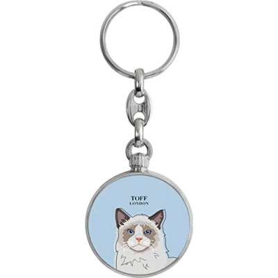 Made in Britain, hand assembled The Ragdoll Head Cat keyring Unique hand illustrated drawing by British based designers Each 37mm round keyring comes with a velvet gift pouch The perfect gift for men, women and children Excellent customer service from London based company