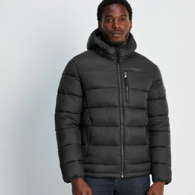 TOG 24 Maloney Mens Padded Jacket. Warm & Wind Resistant Jacket With Insulation Made From Recycled Plastic Bottles. Coat Featuring Pocket 2 Zip Pockets, Black