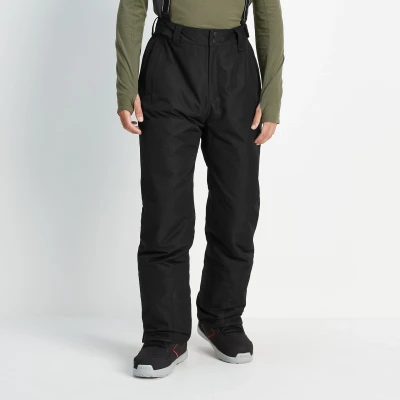 For a pair of ski trousers that tick every box, look no further than our Falcon men's waterproof insulated salopettes. Designed with snowboarders and skiers in mind, they offer excellent wind, cold, and moisture protection. This is all made possible by the 10K waterproofing and breathability, the DWR coating, and the inner taped seams that prevent any moisture from making its way in. Added padding at the back and on the knees ensure you're protected when falling, while the durable fabric and stitching and darting at the knees enable more movement while preventing tears. With adjustable detachable braces, Velcro straps at the waist, and added stretch for movement and ease of getting dressed, these salopettes offer a premium fit and are built to withstand plenty of action on the slopes.