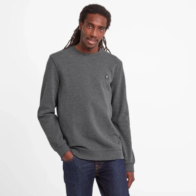TOG24 Mellor Supersoft Mens Crew Neck Sweater with Ribbed Cuffs, Hem and Dark Grey Marl