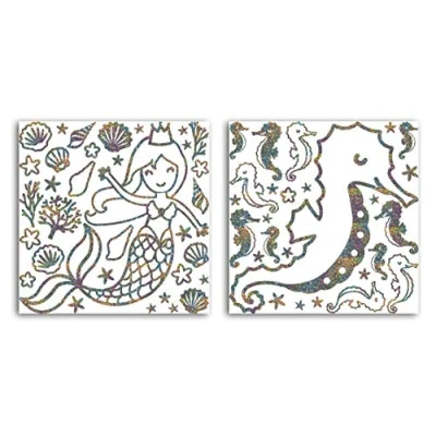 58 Novelty Stickers Patterns: mermaid, hyppocampus, starfish, shells, algae. "Underwater Collection" Colour: iridescent grey and multi-coloured Board dimensions: 10 x 10 cm