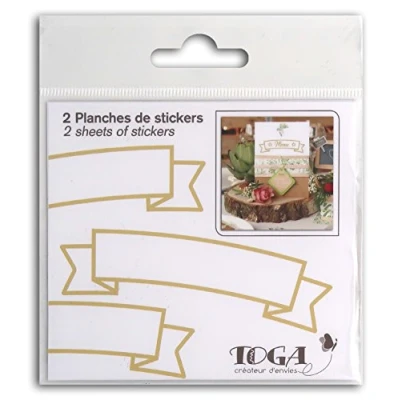 2 sheets of stickers. Colour: Matt Gold Design: banners Dimensions Board: 10 x 10 cm. Acid free