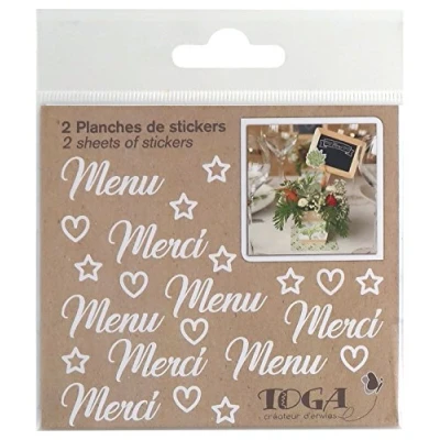 2 sheets of stickers. Colour: White Features Words "Thank You" and menu, Stars and hearts Dimensions Board: 10 x 10 cm. International products have separate terms, are sold from abroad and may differ from local products, including fit, age ratings, and language of product, labeling or instructions.