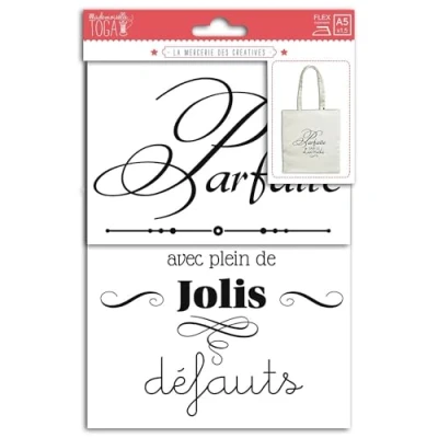 1 sheet Flex iron on sticker in black. Plasticised fabric iron-on – arises with a simple swipe to iron (instructions on the back of the packaging). Design: Pretty defects, positive trend attitude. Sheet Size: 15 x 21 cm. Design Size: 14 x 19 cm. Pflegehinweise: 30 °. Ideal for customisation or clothing and other decorative items made of fabric.