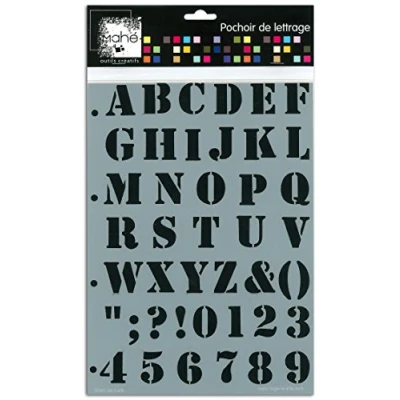 1 lettering stencil. Dimensions: 21 x 30 cm. See below for more details.