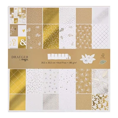 Decorate your desires with our set of 6 printed papers with gold foil detail. Ideal for decorating your scrapbook pages, bullet journal or making small DIY decorations. Various patterns: you will find a wide range of designs in this set with 6 double-sided printed pages (2 gold effect), for a multitude of combinations and creations. 12 different designs to discover. Quality and eco-friendly: these sheets in a size of 30.5 x 31.5 cm, with a weight of 180 g/m², are printed on FSC certified paper from sustainably managed forests with vegetable inks for added environmental protection. The gold and silver collection: This product is part of a collection including the set of 6 printed papers, the pouch of stickers and cut-out shapes and the set of crystal clear silicone stamps. Combine these to perfect your designs It was once drag by toga: For over 15 years, the Toga brand offers you new collections, always on the pulse of time, to accompany you on a daily basis in your creative projects. A benchmark for your scrapbooking, stationery and bullet journal activities.