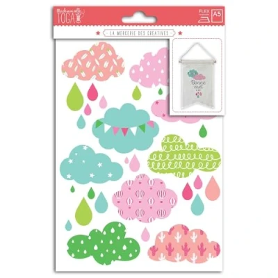 1 x flex fabric transfer film for ironing on Plastic-coated iron on fabric: can be applied with a simple iron. Motif: clouds and drops See description for more information.