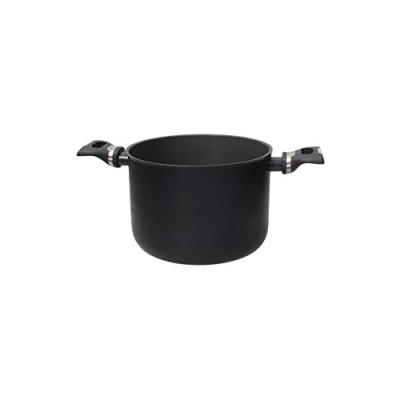 Made in Italy Body in recycled forged aluminium and marbled non-stick High thickness base suitable for induction Soft touch bakelite handles non-slip and anti-scald Dishwasher safe