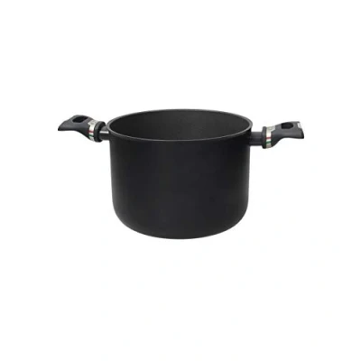 Made in Italy body in recycled forged aluminium and non-stick marbled high thickness bottom suitable for induction non-slip and anti-scald soft touch bakelite handles dishwasher safe
