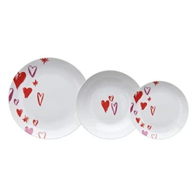 Tognana, Madison 6 Person Tableware Set, 18 Pieces, White and Red Porcelain