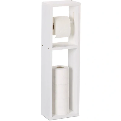 Toilet Paper Holder, Wall Mounted or Freestanding, Walnut, Spare Roll Stand, HxWxD: 70 x 20 13 cm, White Relaxdays