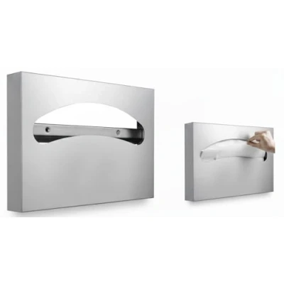 Clean modern design that is built to last with strong durable 304 grade stainless steel Holds up to 250 Single Fold or 1/2 Fold toilet seat covers Seat cover dispenser overall size: 15.75"(W) x 11.02"(H) x 1.97" (D) Suggested maximum mounting height of 44" from the floor PLEASE READ: Each item is coated with a thick, protective, white layer to prevent scratches and scuffs throughout the shipping & handling process. PLEASE be sure to remove. Purchase includes a 1 year warranty.