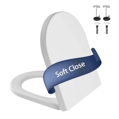 Toilet Seat Soft Close D Shape with Quick Release for Easy Clean, Universal White Adjustable Stainless Hinges, Sturdy Plastic Lid
