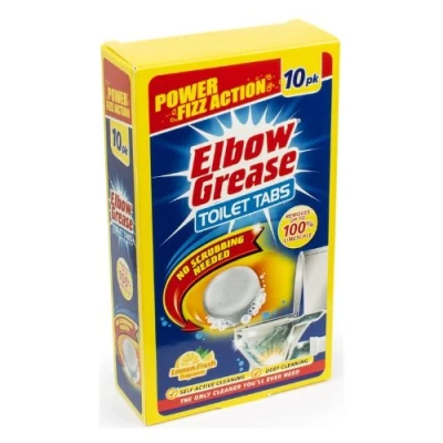 Elbow Grease Toilet Tablets offer a revolutionary solution for maintaining a clean and fresh toilet effortlessly. Formulated with a unique fizzing action, these powerful tablets combat limescale and stubborn stains with ease, ensuring your toilet bowl remains gleaming and hygienic with minimal effort.