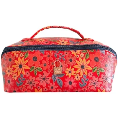 Toiletry Bag Triangular Opening Leatherette Flowers 25x11x11, Multicoloured, Makeup Travel Case