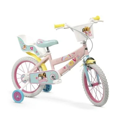 Toimsa Barbie Love 16 inch Bicycle, Kids Bike learn to ride, with training wheel stabilisers and mudguard, for children/youth age 5 7 Years, Pink Yellow