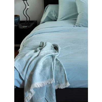Toison d'or Cap Ferret Washed Cotton Bolster Cover, 43 cm x 200 cm, Lake