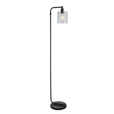 A modern floor light for contemporary interiors. Matt black painted finish with clear glass shade and inline foot switch.