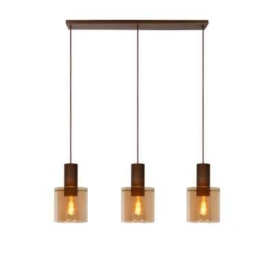 Three in a row combined with an especially remarkable design. This pendant light, Toledo, has the goal of bringing mood and cosiness to your dining room. The combination of the amber-coloured glass and the copper-coloured part of thel ampshade in aluminium radiates nothing but warmth. The subtle wood motive applied to the copper also contributes to this effect. You can adjust this chandelier in height and you can connect it to a dimmer. Combine it with the right LED lights and add a touch of vintage to your interior with Toledo. Unique product features: • Suitable for use with LED light sources • This lamp is adjustable in height • Easy to connect to a dimmer (excl.) • Made of high quality glass Important product features: • Energy consumption: 3x40W / 230V / Dimmable (excl.) • Dimensions: Ø20 cm H.165 cm • 2 Years warranty on the fixture Three in a row combined with an especially remarkable design. This pendant light, Toledo, has the goal of bringing mood and cosiness to your
