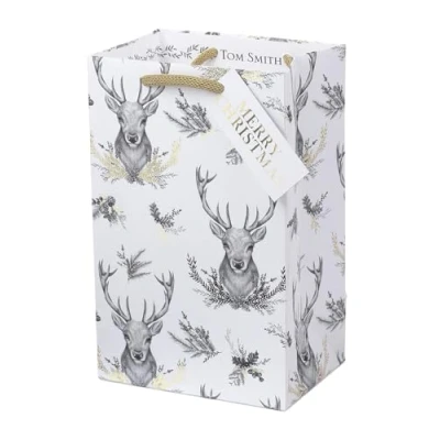 Tom Smith Luxury Gift Bag Christmas Tote Perfume Jewellery White Stag Design Xmas