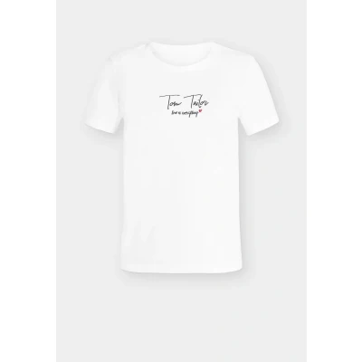 TOM Tailor CREW NECK LOGO Print Tshirt whisper white Sale at Zalando UK | Outer fabric material: 100% cotton | Sale order at Zalando UK! Size: 3XL. Color: Whisper white. Pattern: print.