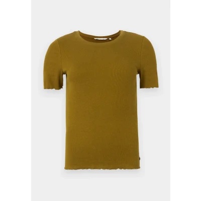 ZalandoTightfitting Tshirt with scalloped hem edges. Made of a ribbed fabric with a slight stretch content for a comfortable fit. Sale | Outer fabric material: 93% cotton, 7% elastane | Sale order at Zalando UK! Size: Large. Color: Warm moss green. Pattern: plain.
